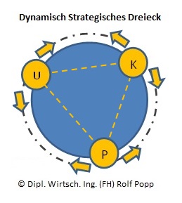Dies ist eine dynamische Beschreibung der Korrelation zwischen Unternehmen, Produkten und Kunden. Ergänzt wird es durch das strategische Viereck welches den Markt mit einbezieht.